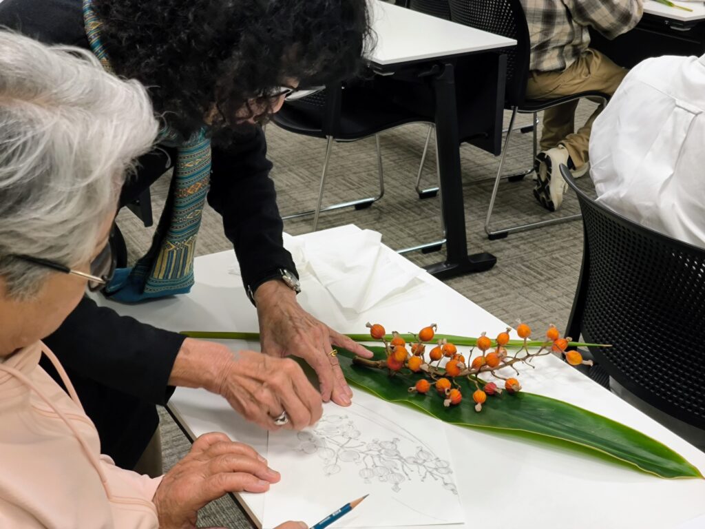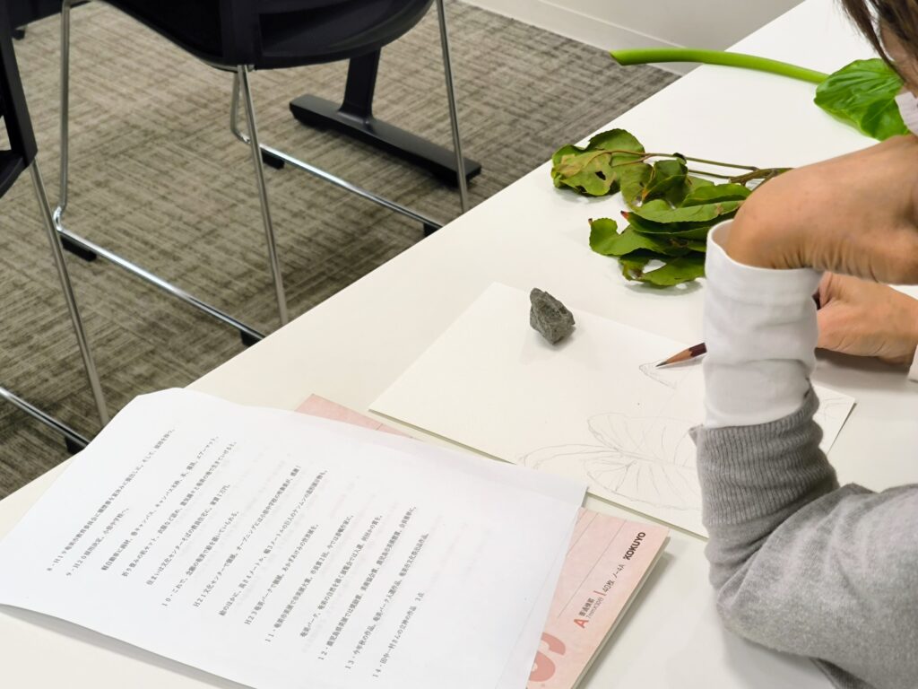 講義を聞くだけでなく、実際に手を動かし、モチーフを観察して描くという体験は、田中一村が向き合った自然への視点を追体験するような特別な時間となりました。